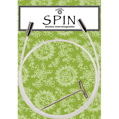 SPIN™ cables allow your ChiaoGoo tips to swivel freely! They are made of a pliable, clear nylon. The length of the cable does NOT include the length of the needle tips, so please add the length of the needle tips to get the total length of your needles. Lifeline holes can be found at each end of these cables. Insert the T-shaped tightening key into the lifeline hole to assist with securing your tip/cable connection. TWIST™ tips will work with SPIN™ cables.