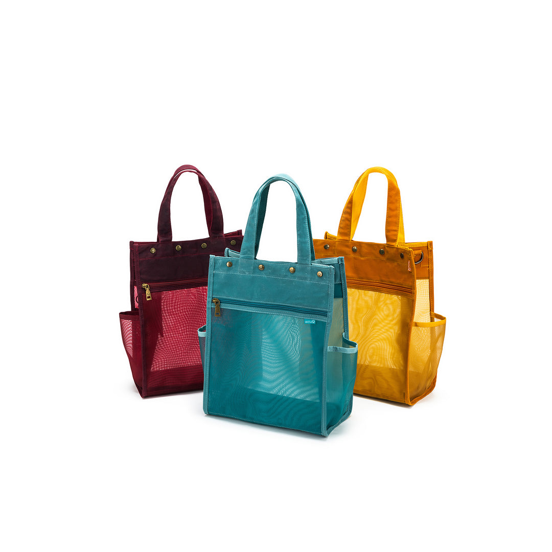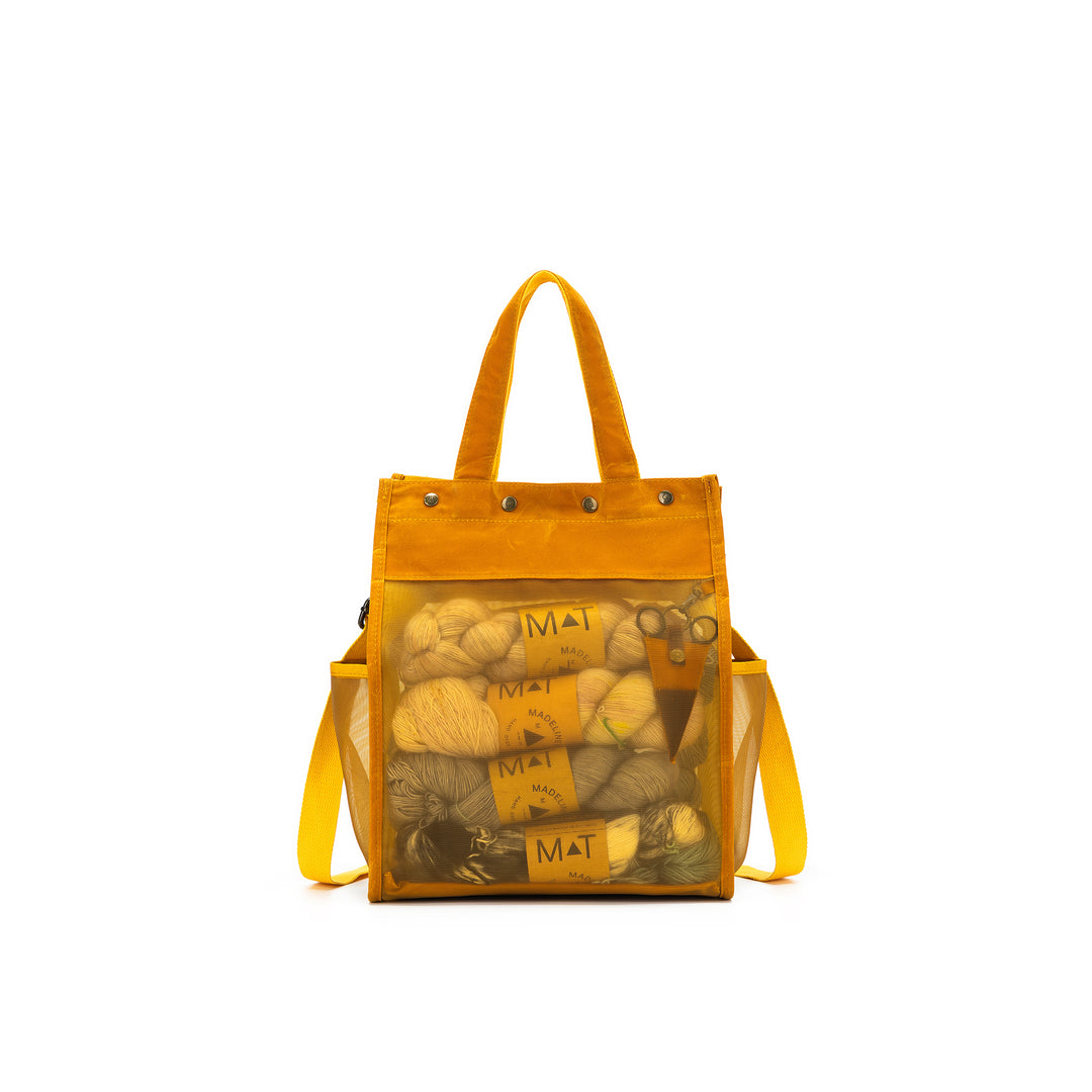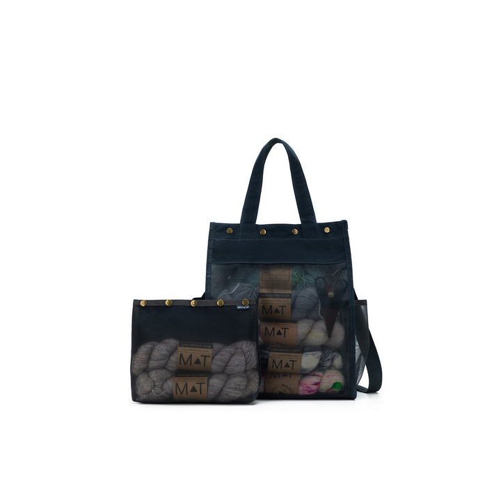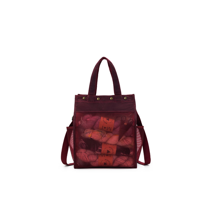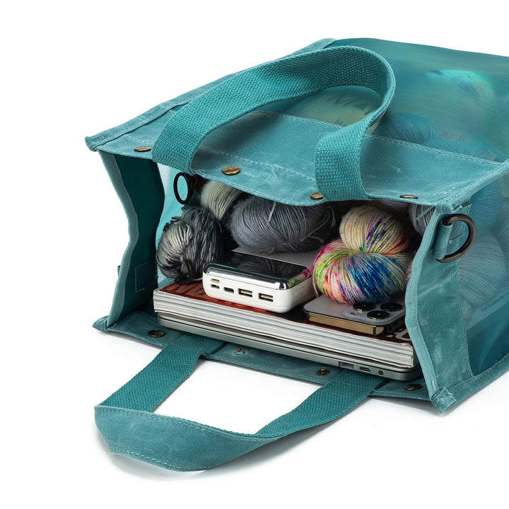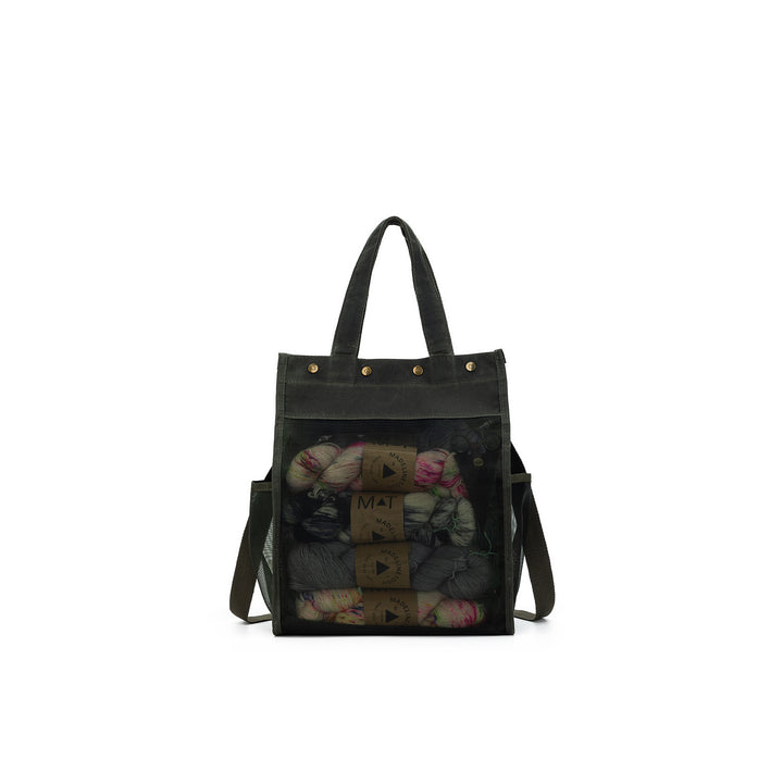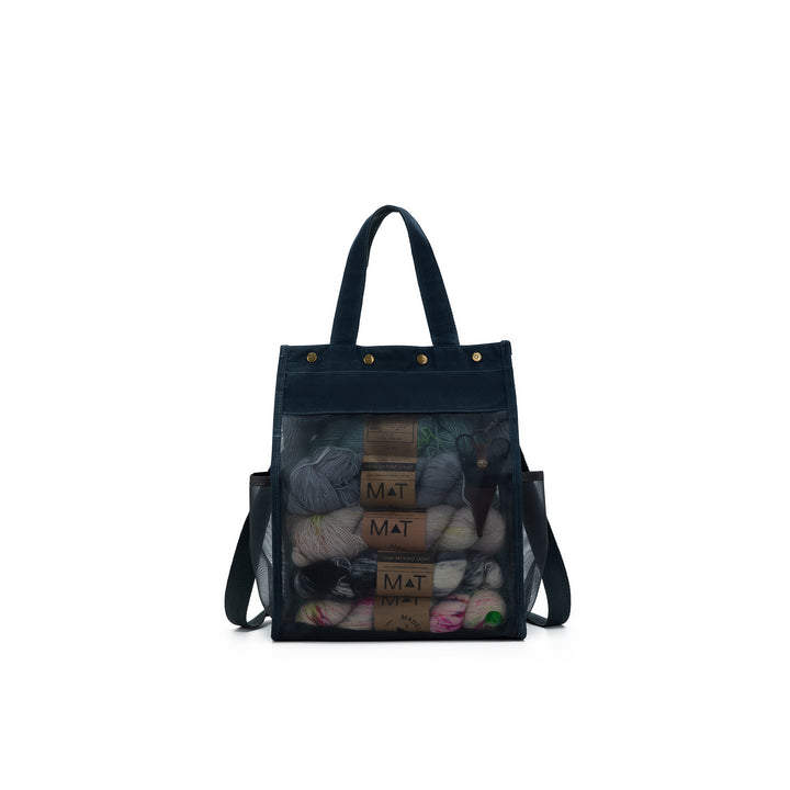 Introducing the della Q Tall Maker's Mesh Tote - a fusion of the tote and a rucksack, perfect for your crafting adventures on warmer days. The Tall Maker's Mesh Tote is the taller sister bag to the Maker's Mesh Tote. Carry it effortlessly as a crossbody or shoulder bag. With ample interior space, it comfortably accommodates over 10 skeins of yarn or medium-to-large-sized projects!