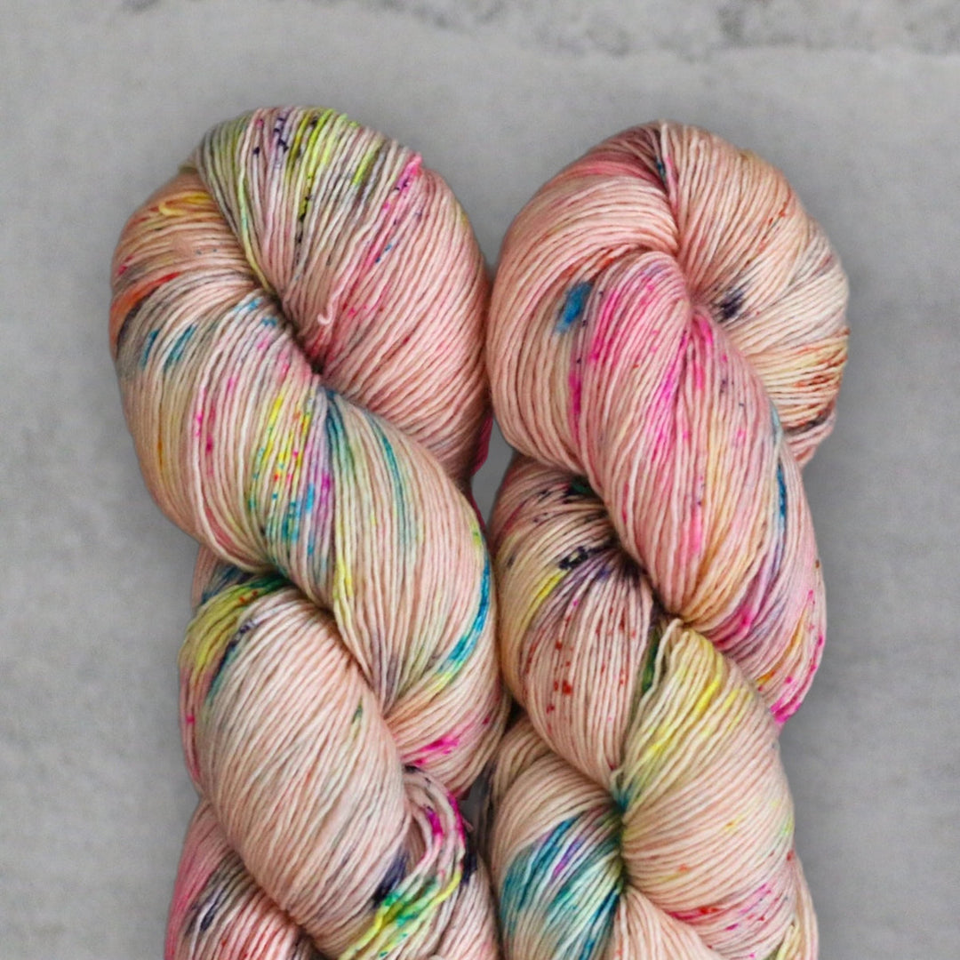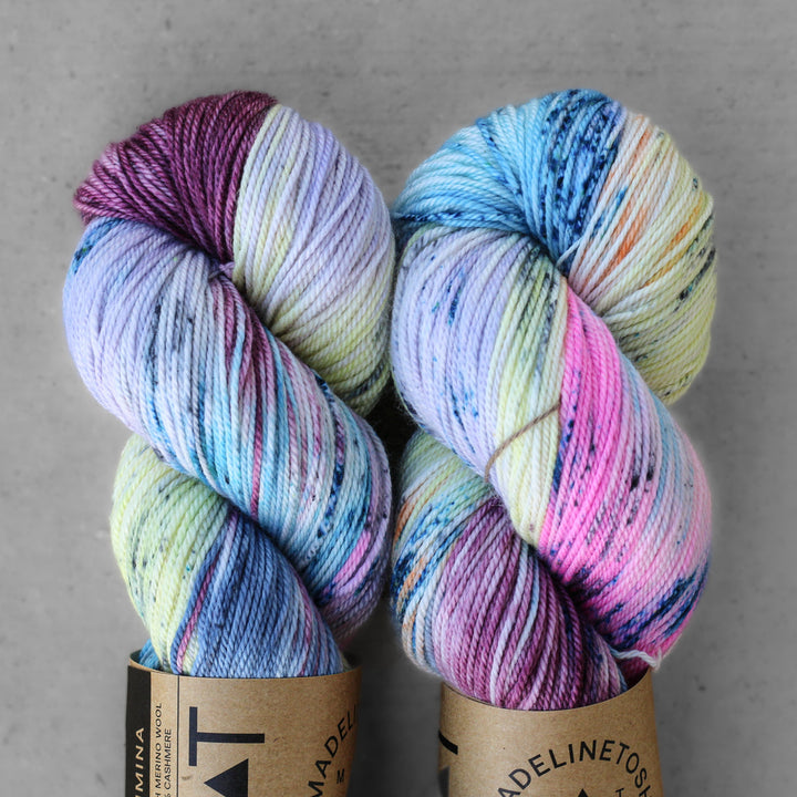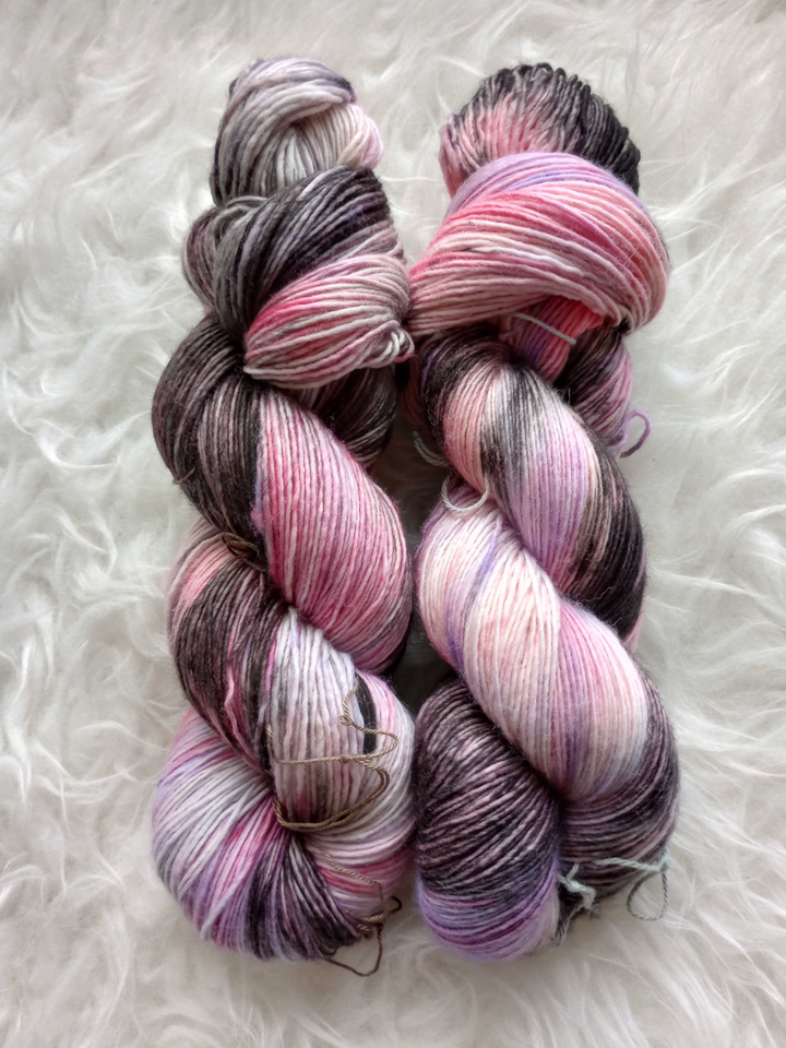 75% Superwash Merino wool, 15% Silk, 10% Cashmere