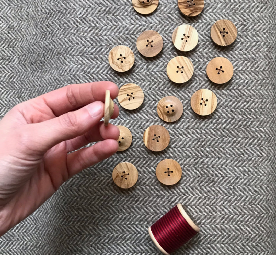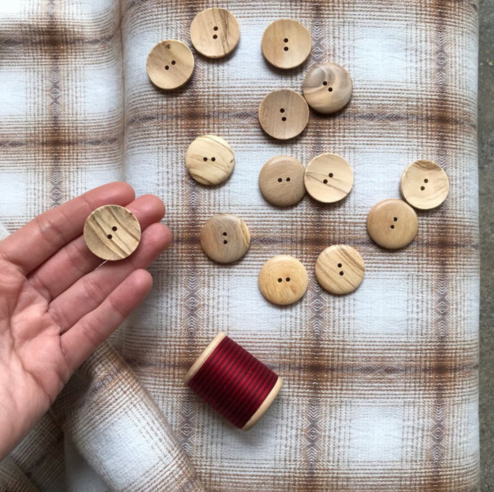 - Wood button. Ideal for knitted cardigans, skirts, jackets, etc.